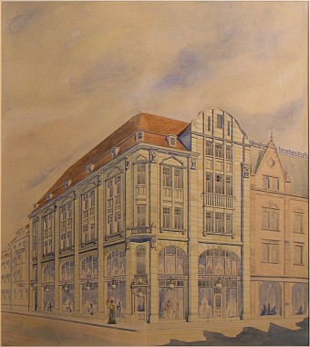 Links: Architekturzeichnung von Ganter & Picard, 1908.