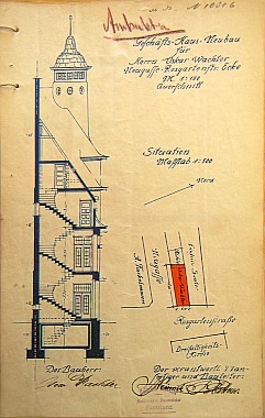Ein Entgegenkommen [der Nachbarn] ist im vorliegenden Fall um so weniger geboten, als der Bauherrin von Seiten ihres Nachbarn Wachter das Anerbieten gemacht wurde, für 13000 Mark das Anwesen käuflich zu erwerben, ein Preisgebot, das nach Ansicht des Stadtrats als reichlich hoch bemessen anzusehen ist...